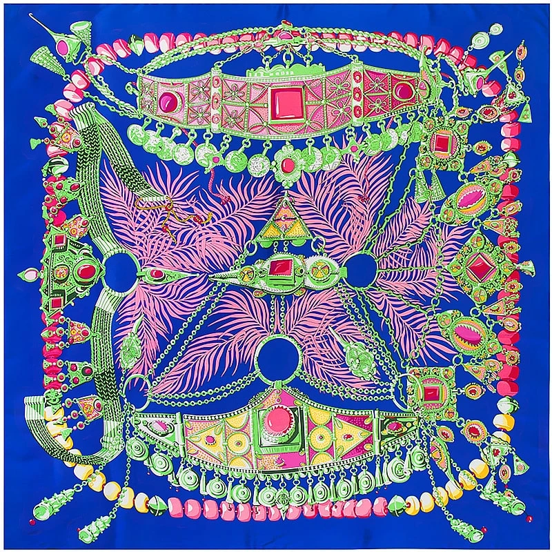 Bandana de grande taille, il possède la vertu de se fixer de nombreux genres, que ce soit autour de la nuque à la façon d’un cowboy ou dans les cheveux façon bohème.