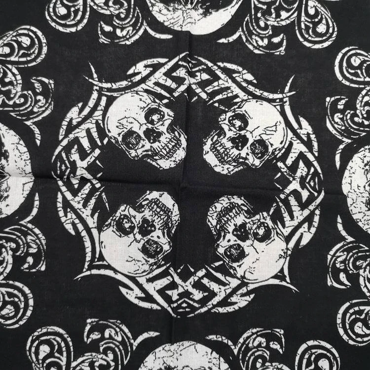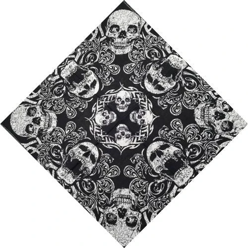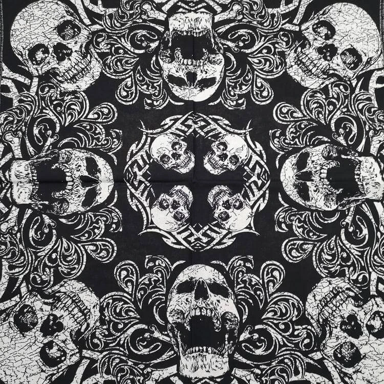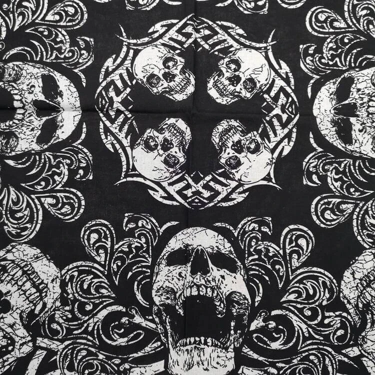 Historique article de mode qui a traversé l’histoire, notre Bandana Infernal est en état d’être usé sur le front ou autour de la nuque, de diverses manières variés.