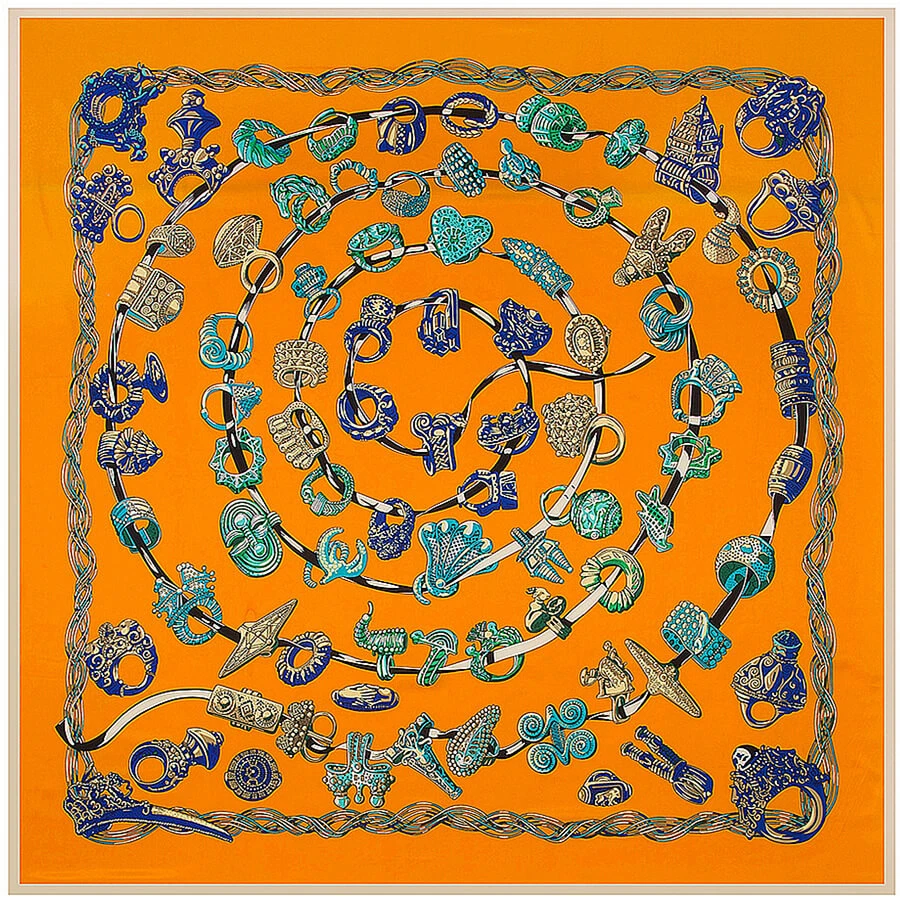 Bandana grand format, il peut ainsi s’attacher de nombreuses natures, que ce soit porté autour du cou à la façon d’un foulard ou dans les cheveux comme une bohème.